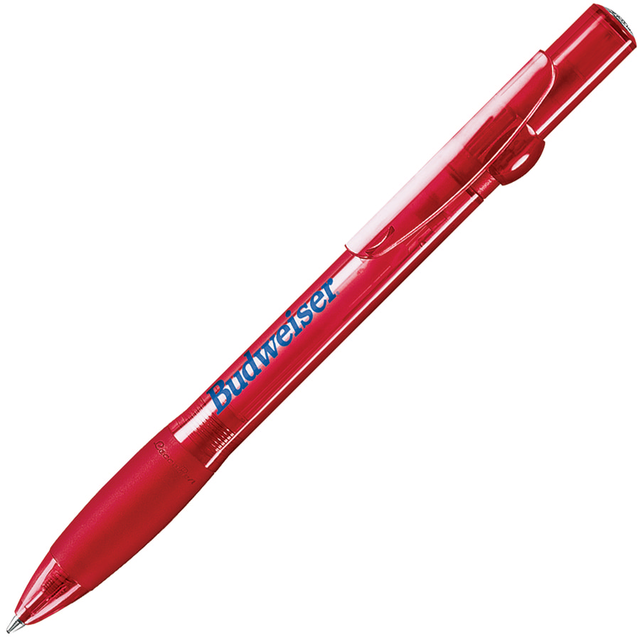 Удобная шариковая ручка с нажимным механизмом и мягким резиновым грипом, который снимает напряжение с кисти руки при письме.