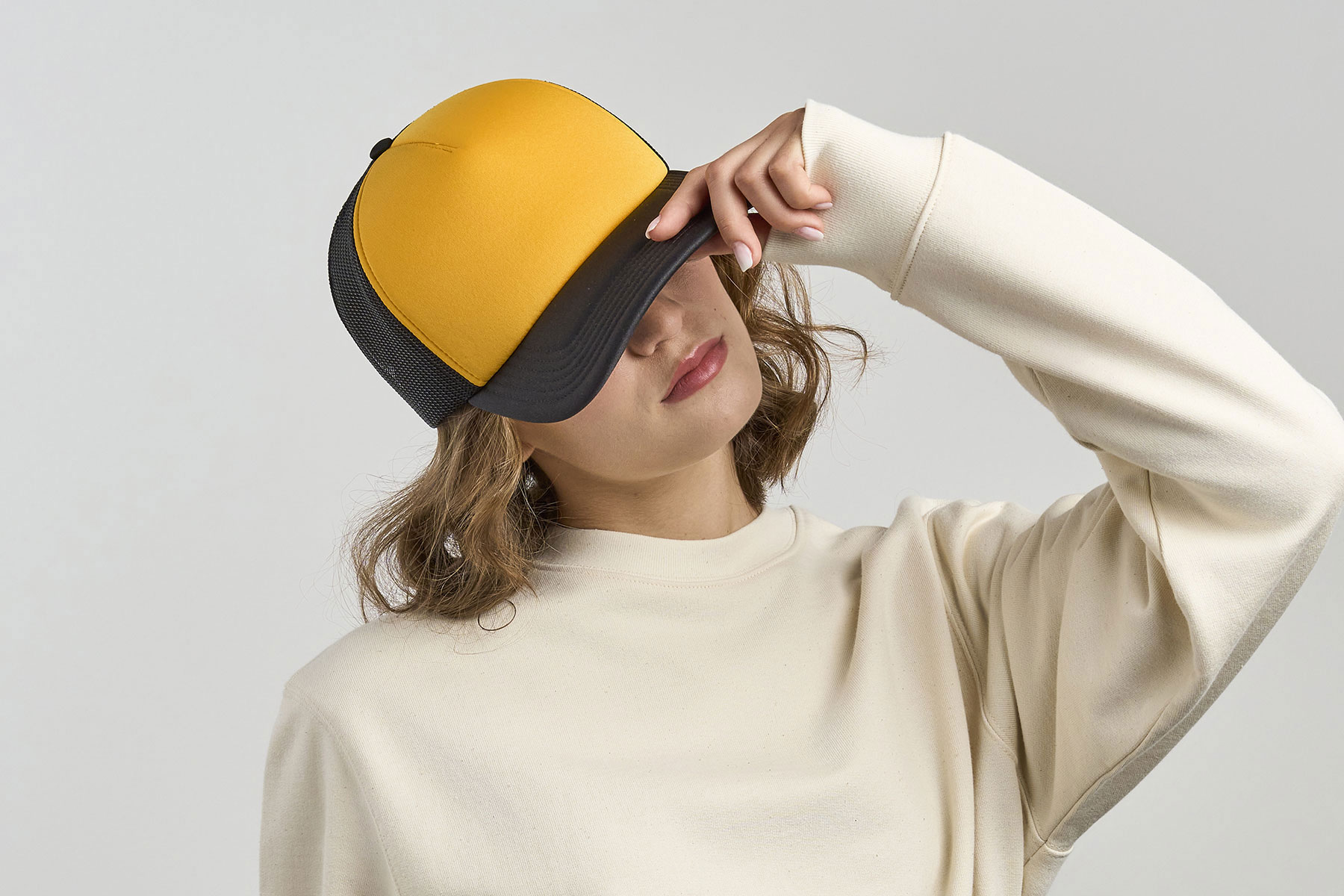 Легкая бейсболка RAPPER — культовая бейсболка-тракер, которая отлично подойдет для мероприятий, проводимых в теплое время года. — 5 клиньев, — без лобового шва, — боковые и задние панели со вставкой из мягкой сетки, — изогнутый козырек, — пластиковая застежка. Лобная часть купола: цвет близкий к Pantone White, козырёк и сетка — Pantone 1235 C