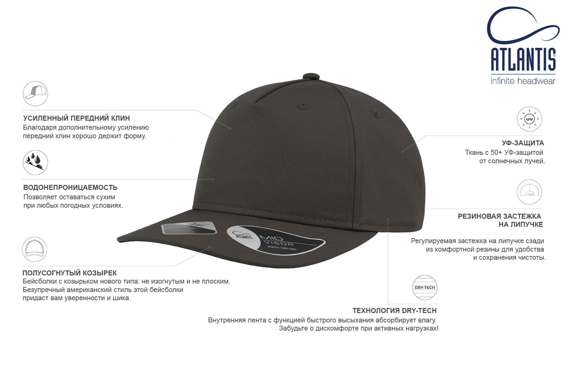 Бейсболка Ray незаменима для людей с повышенной чувствительностью кожи, а также для тех, кто длительное время находится под палящим солнцем.- 5 клиньев,- изогнутый козырек,- вышитые люверсы для лучшей вентиляции,- лента DRY-TECH,- защита UPF50+, — резиновая застежка на липучке
