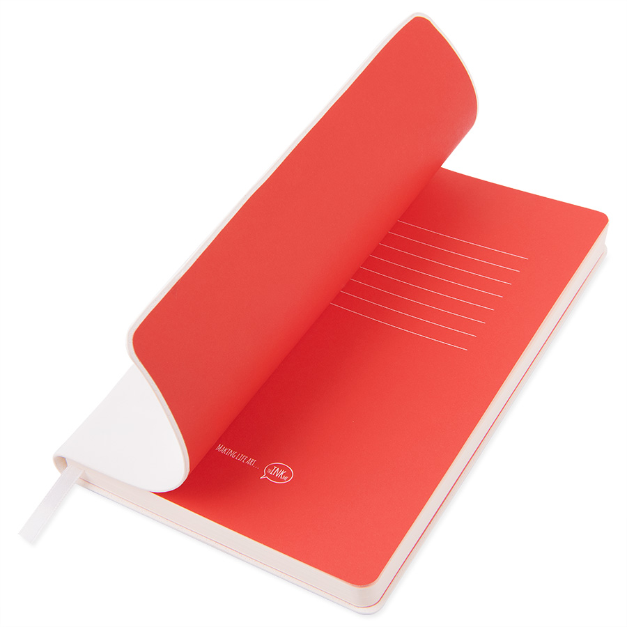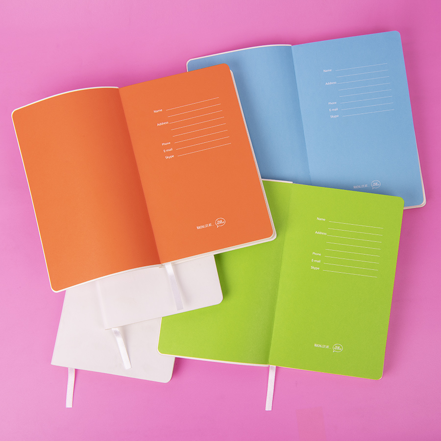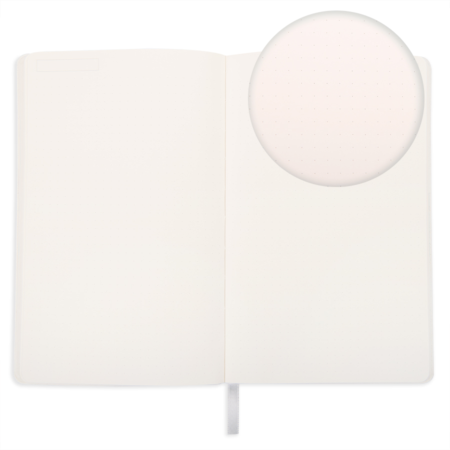 Блокнот с мягкой термоактивной обложкой и популярной комбинацией цветовТермоактивный PU материал VelvetЦвет обложки белыйЦвет форзаца, близкий к Pantone Blue 298UВнутренний блок 256 страниц в точкуИдеально скругленные углы блокаПерфорированные 8 последних листов Кремовая FSC бумага 70 г м2Ляссе в тон обложкиИндивидуальная упаковка: фирменный сливбокс thINKme