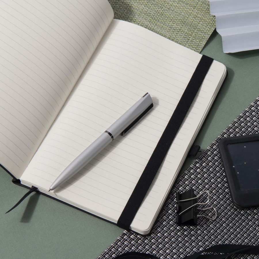 Soft-touch блокнот с покрытием, защищающим от царапин FSC сертификат Мягкая термоактивная обложка PU нового поколения Silk Plus Пантон, близкий к White Кремовая бумага (блок 70 гр, форзац 160 гр) Блок 192 стр. в линейку Перфорация 8 последних листов. Ляссе в тон обложке. Практичные закругленные углы. Надежный прошитый переплет. Упаковка: фирменный слив-бокс