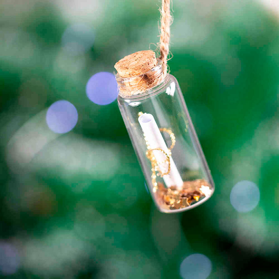 Небольшая бутылочка для пожеланий на предстоящий Новый год. В комплекте листок бумаги, на котором можно написать пожелание партнерам или сотрудникам. А можно оставить его чистым, чтобы одариваемый сам написал на нем свое заветное желание. Бутылочку можно повесить на елку. Индивидуальная упаковка — белая картонная коробка.
