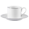 Благородство и умеренность — характерные черты этой чайной пары от собственной торговой марки BRISTOL. Элегантная чашка с блюдцем из костяного фарфора придаст особые ноты привычному чаепитию. Этот материал содержит в своем составе примеси обожженной костяной муки, которые делают ее гораздо легче аналогичных моделей. Его ценность обеспечивается древней историей, секрет создания которого хранили долгое время под строжайшим запретом. Благодаря качеству фарфора стенки такого изделия на порядок тоньше, при этом не теряют прочности. Чашка выполнена в классическом стиле объемом 200 мл. Блюдце имеет удобную выемку, которая не дает чашке скользить. Обе части набора оформлены серебряным кантом. Возможность персонализации горячей деколью придаст паре особый стиль и сделает ее отличным подарком. Чайная пара PLATINUM — аристократический стиль, который необходим каждому Чайная пара поставляется в подарочной коробке с ложементом