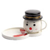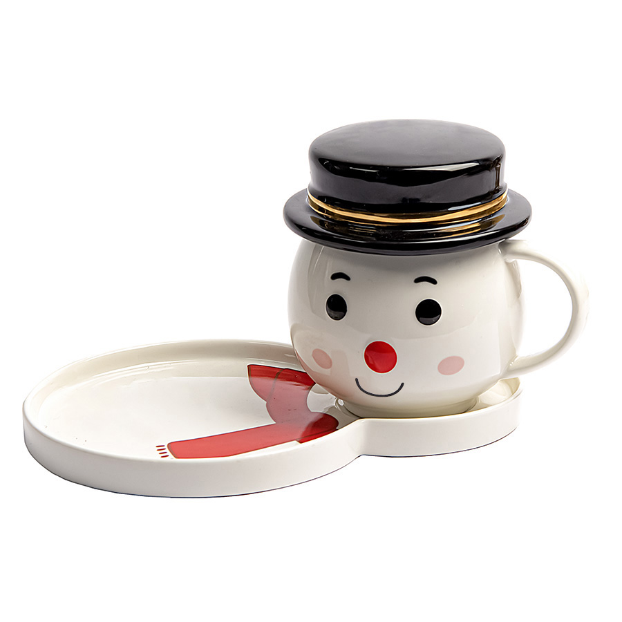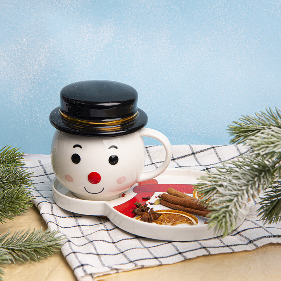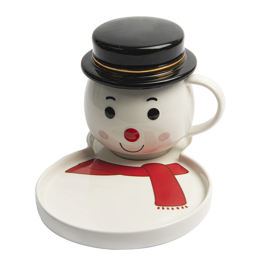 По-настоящему новогодняя чайная пара Снеговик!Кружка обтекаемой формы с крышкой в виде шляпы.Крышку можно использовать для конфет или чайных пакетиков, плюс она точно не даст остыть вашему напитку.Вместительное блюдце, на которое можно положить круассан или любимое пирожное.Такой подарок совершенно точно завоюет внимание и любовь того, кому его подарят!