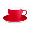 Чайная пара из фарфора с прорезиненным покрытием soft-touchЧашка классической формы и удобное глубокое блюдцеЦвет близкий к Pantone 200C