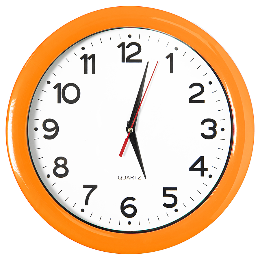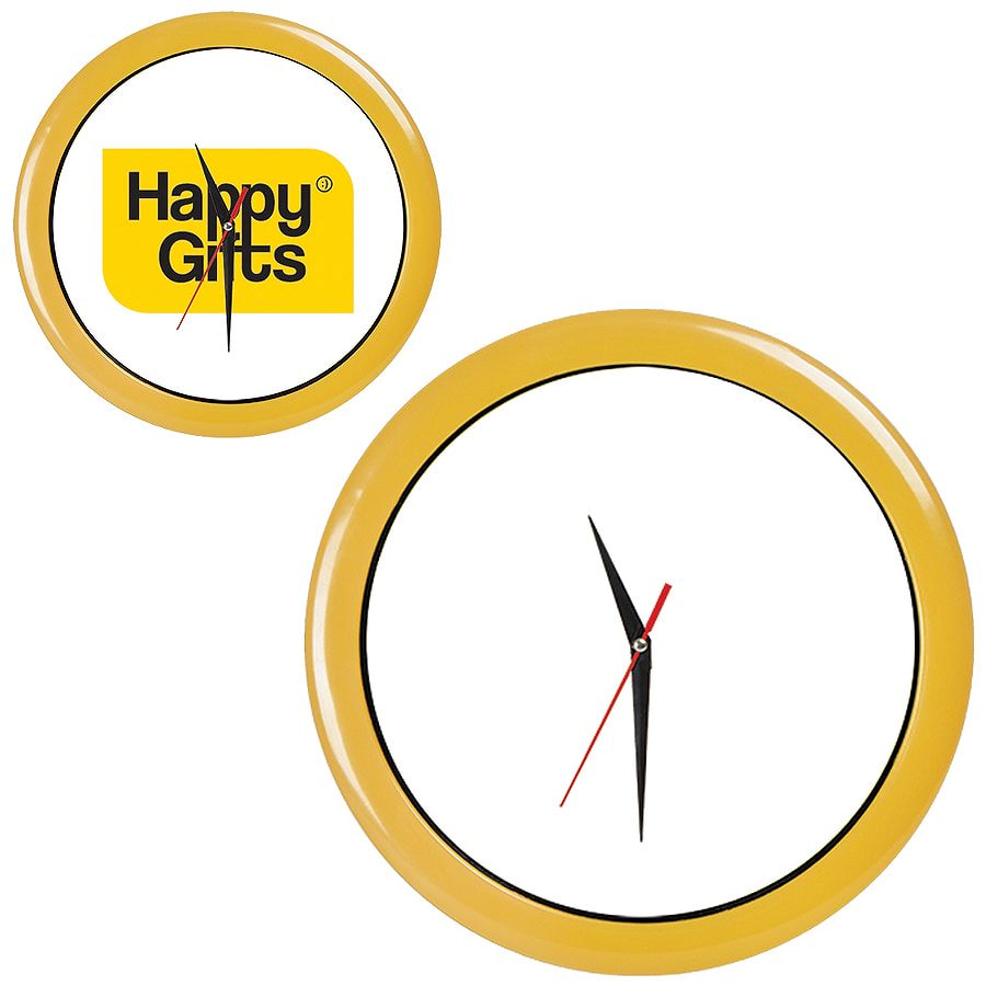 Pantone 123 C Часы настенные с кварцевым механизмом, работают от 1 батарейки АА. Предназначены для вставки циферблата с печатью по индивидуальному дизайну Комплектация: 1) корпус с часовым механизмом, 2) минеральное стекло, 3) ободок, 4) стрелки — 3 шт. (часовая и минутная стрелки — черного цвета, секундная — красного цвета). Для удобства вставки циферблата с печатью по индивидуальному дизайну, стрелки часов не зафиксированы и поставляются в отдельном пакетике) 5) Муляж циферблата (диаметр 235 мм) Для вставки используется мелованная бумага матовая 300 гр.