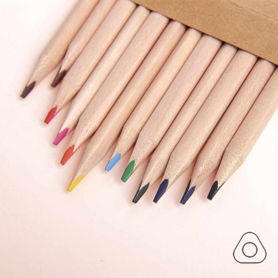• яркие цвета• трехгранный корпус из высококачественной древесины, не окрашен, гладкий без заусецев.• прочный грифель 3.0 мм, класса А• легко затачиваются