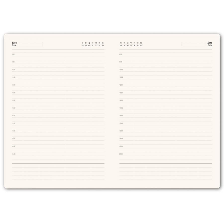 Ежедневник недатированный с мягкой термоактивной обложкой и популярной комбинацией цветов Термоактивный PU материал Velvet Цвет обложки, близкий к Pantone 7688C Цвет форзаца, близкий к Pantone Cool Gray 5U Внутренний блок 256 страниц в линейку Идеально скругленные углы блока Кремовая FSC бумага 70 г м2 Ляссе в тон обложки Индивидуальная упаковка: крафтовый сливбокс