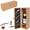 В комплекте: нож сомелье со штопором, пробка, воронка, каплеуловитель Уникальный и универсальный подарок – два в одном! Осталось выбрать любимое вино одариваемого, и прекрасный комплект для благородного напитка готов. Стильный футляр для бутылки из бамбука со всеми необходимыми винными принадлежностями в крышке: нож сомелье со штопором, пробкой, воронкой, каплеуловителем. Удобный замочек, пространство для бутылки с выемкой для горлышка, а каждый предмет – на своем предусмотренном месте. Футляр идеально подойдет не только для бутылки стандартного размера, но и меньшей, и даже большей, потому что полочка-подставка свободно регулируется в зависимости от высоты бутылки. Надежный футляр из натурального материала с гравировкой будет смотреться просто великолепно! И не стоит забывать про бутылку, ведь ее тоже можно декорировать для особого случая и преподнести солидный презент, который будет всегда ассоциироваться с самыми лучшими и знаковыми моментами жизни.