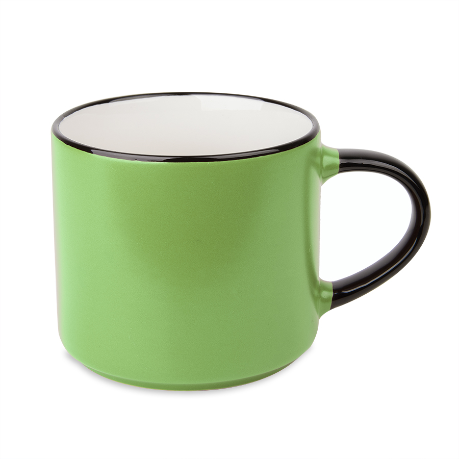 Ёмкая кружка трендовой цилиндрической формы с матовым покрытием.Яркий цветной корпус с черной ручкой и кантом по краю.Цвет близкий к Pantone 072C
