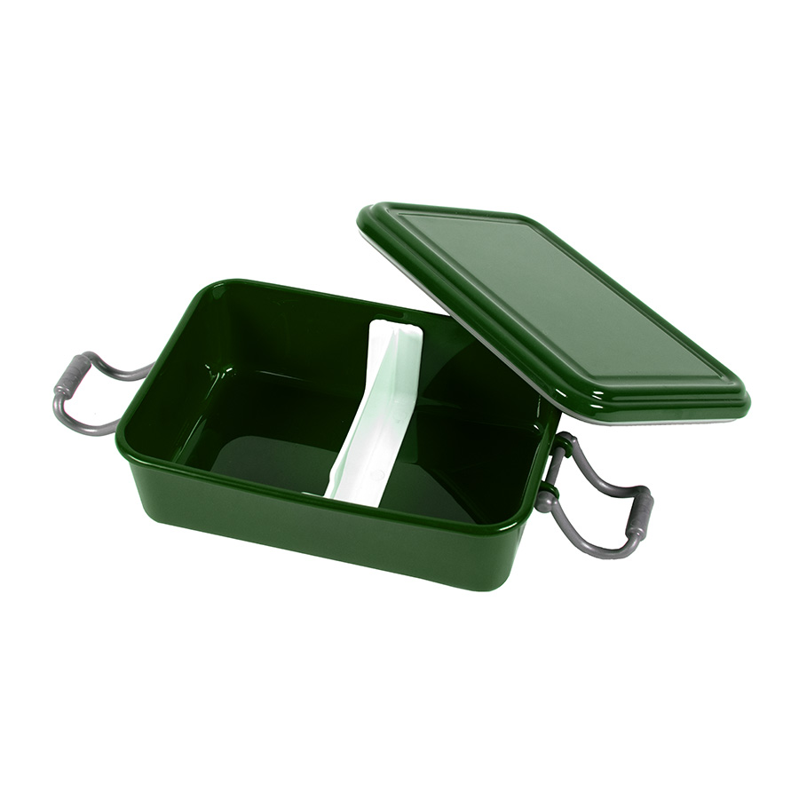 Ланч-бокс с разделителем на 2 секции. Не герметичный. Подходит для использования в микровоолновой печи (со снятой крышкой), в посудомоечной машине, в морозильной камере. Корпус выполнен из PP-пластика. BPA-free (не содержит бисфенол А).