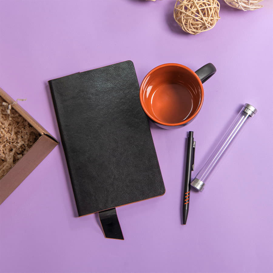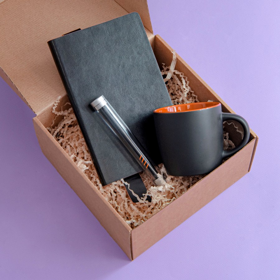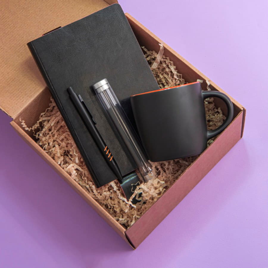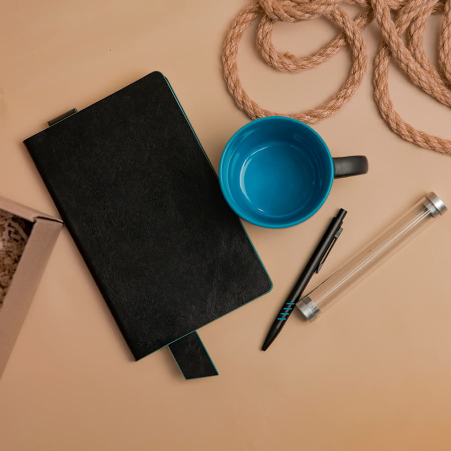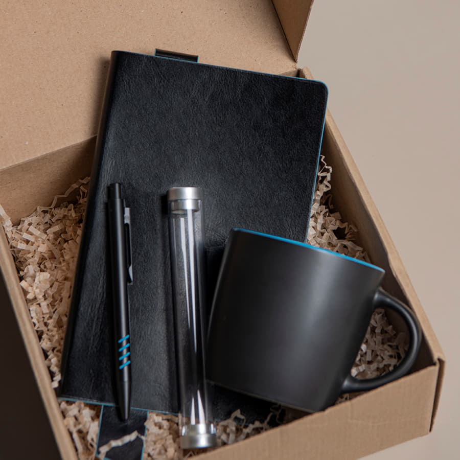Набор подарочный DESKTOP: кружка, ежедневник, ручка, стружка, коробка, черный/голубой