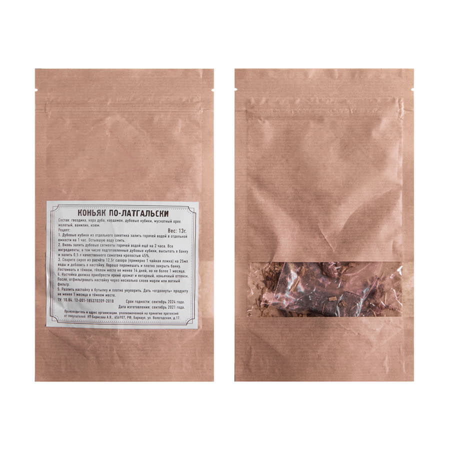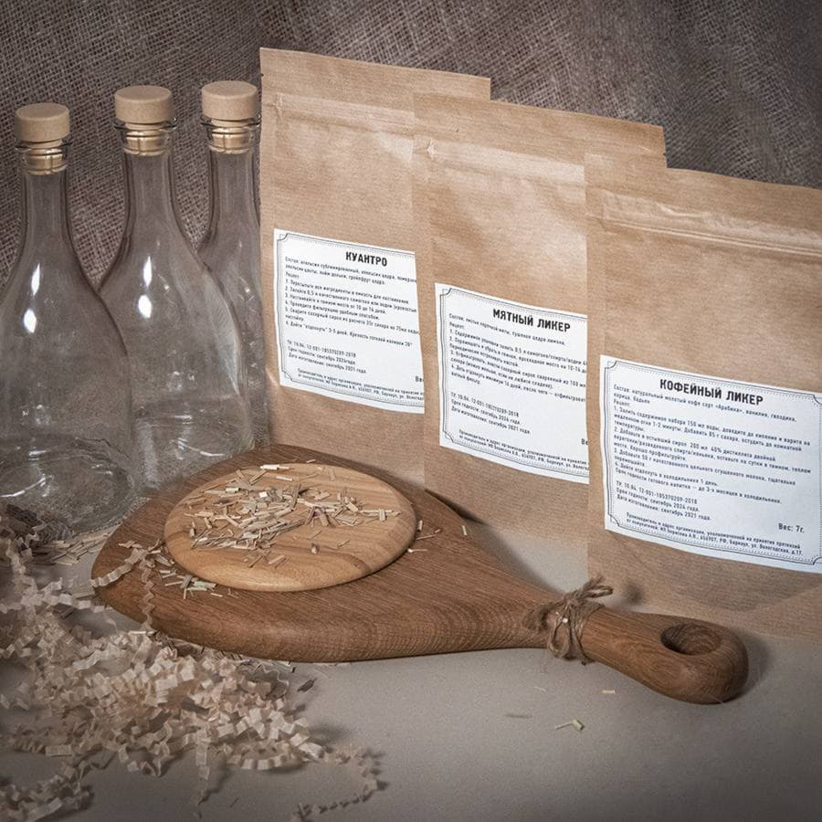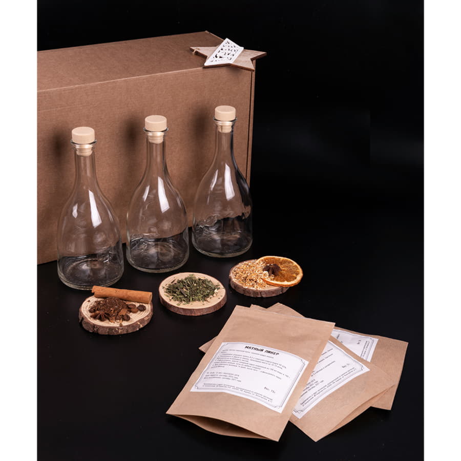 В состав набора арт. 39477 входят:- стружка- коробка подарочная арт. 34931, размер 40 х 25 х 15 см- три стеклянные бутылки объемом 0,5 литра- три полимерные пробки- три сбора для приготовления ликеров. Коньяк по- Латгальски напоминает вкус элитного, выдержанного годами коньяка. Особенное отличие напитка – это получение такого же вкуса за короткое время, как и у коньяка при длительном настаивании. Дорогие ёмкости заменяет дубовые кубики, а для придания вкусового сходства используют специи. Состав: Гвоздика, кора дуба, кардамон, дубовые кубики, мускатный орех молотый, ванилин, изюм. Вишня на коньяке — это домашняя настойка, которая имеет красивый рубиновый цвет и нежный вишнёвый вкус. Состав: Вишня вяленая, дубовые кубики средней обжарки (Кавказ), корица, миндаль, изюм, гвоздика, плоды шиповника. Миндальный коньяк обладает терпким вкусом с долгим послевкусием вишни. Дубовые кубики средней обжарки облагораживают настойку и придают нотки выдержанного элитного алкоголя.