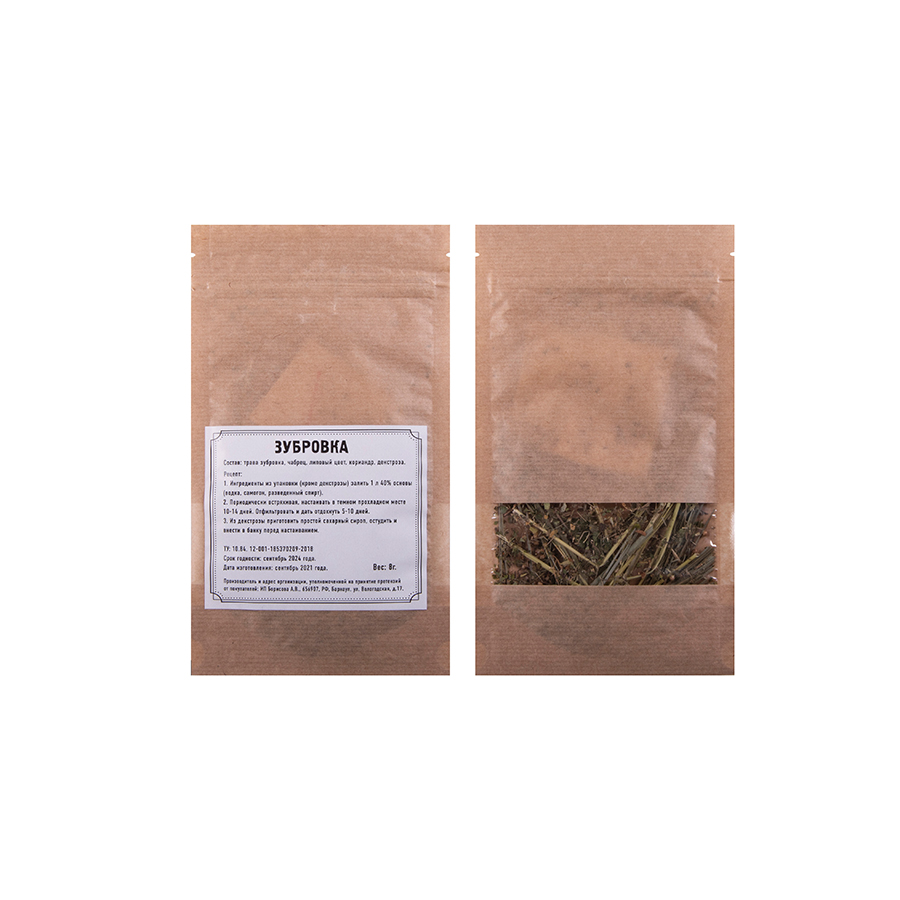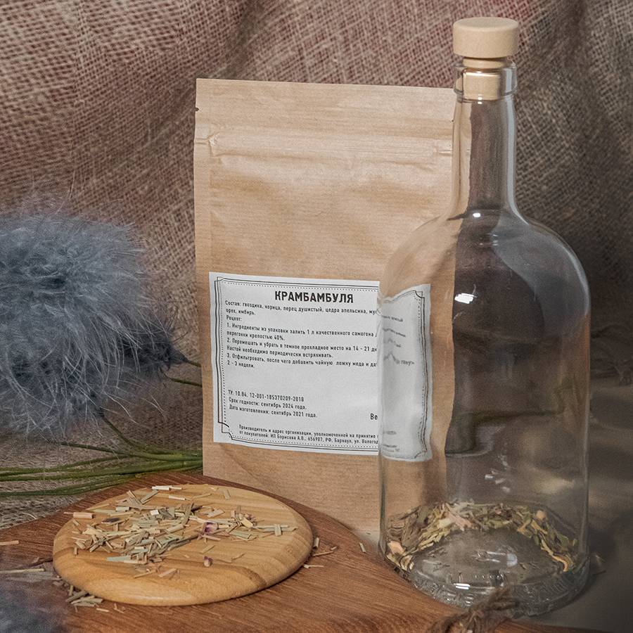 Набор для приготовления 1 литра Зубровки. В состав набора входят: — набор трав и специй «Зубровка» (трава зубровка, чабрец, липовый цвет, кориандр, декстроза), — бутылка 1 л, — пробка Т-образная, — стружка бумажная, — коробка подарочная арт. 34930, размер 30 х 25 х 15 см