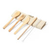 Набор из пяти предметов: ложка, вилка, нож, трубочка для питья с ершиком для чистки. Предметы убраны в холщовый чехол на кнопке и внутри закреплены резинкой. Такой набор удобно носить с собой, брать в дорогу или путешествие. Индивидуальная упаковка — ПЭ пакет
