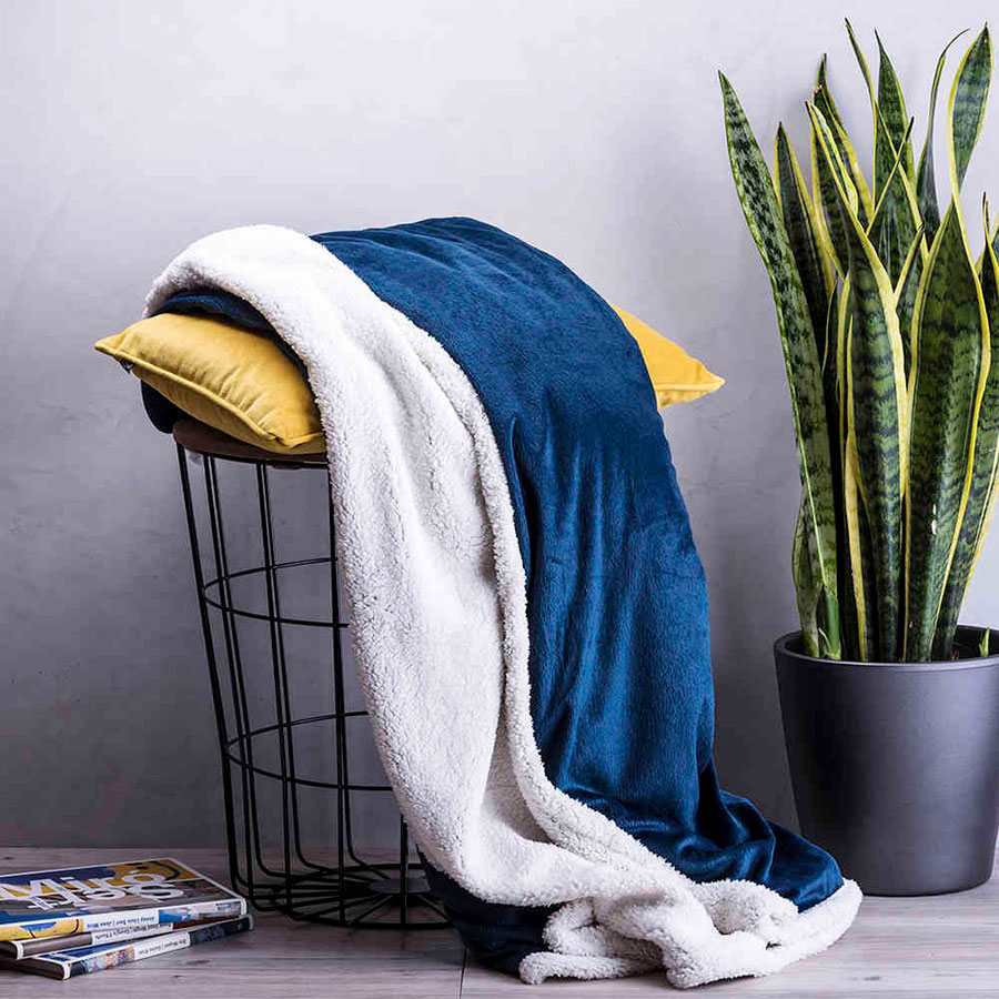 Элегантный плед из кораллового флиса и шерпы, плотностью 380 г м2. Открытка для персонализации, лента.
