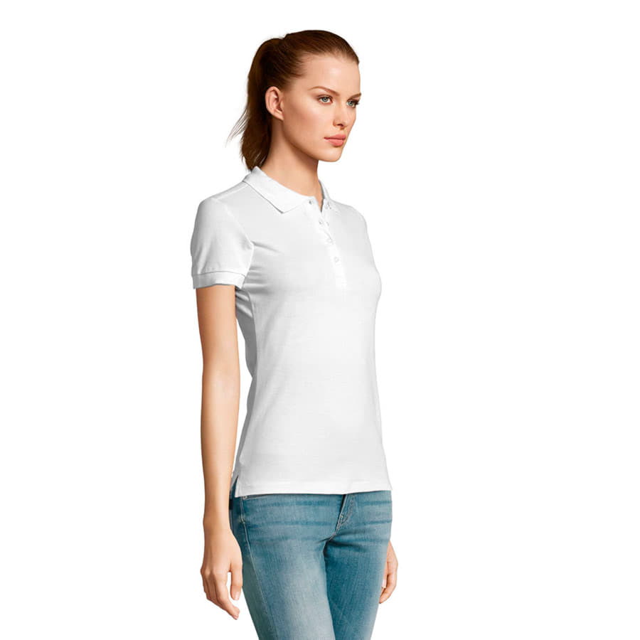 Приталенное женское поло.Прямой низ, боковые разрезы. Рукав короткий.Воротник и манжеты из эластичной резинки-рибаны.Ворот укреплен тесьмой.