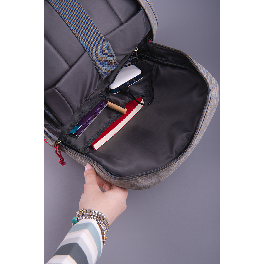 BEAM MINI — мини версия уже ставшего культовым рюкзака BEAM.MINI как стиль жизни! Основной цвет: близкий к Pantone 421 C, нижняя часть: цвет, близкий к Pantone 186 C · Основная ткань: 100% полиамид, подкладка: 100% полиэстер· Объём: 8 литров· Вмещает ноутбук 15,6″ Описание:· Прочный и водоотталкивающий материал· Основной отдел на молнии с двумя бегунками и планкой, защищающей от попадания влаги внутрь· Наружный удобный карман -органайзер на молнии· Внутри укрепленный отдел для ноутбука с защитной тесьмой на липучке· USB разъем для подзарядки вашего устройства (внутри рюкзака в специальном кармане на молнии расположены кабель для соединения с power bank и провод с разъемом мини-джек 3,5 мм для наушников)· Эргономичные лямки и ручка рюкзака· Лямки прошиты дополнительными стропами в быстро изнашиваемых местах, которые можно отрегулировать по длине и зафиксировать пластиковыми крепежами· Упаковка: прозрачный пакет