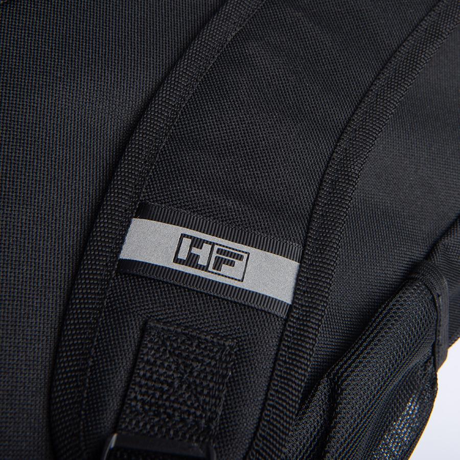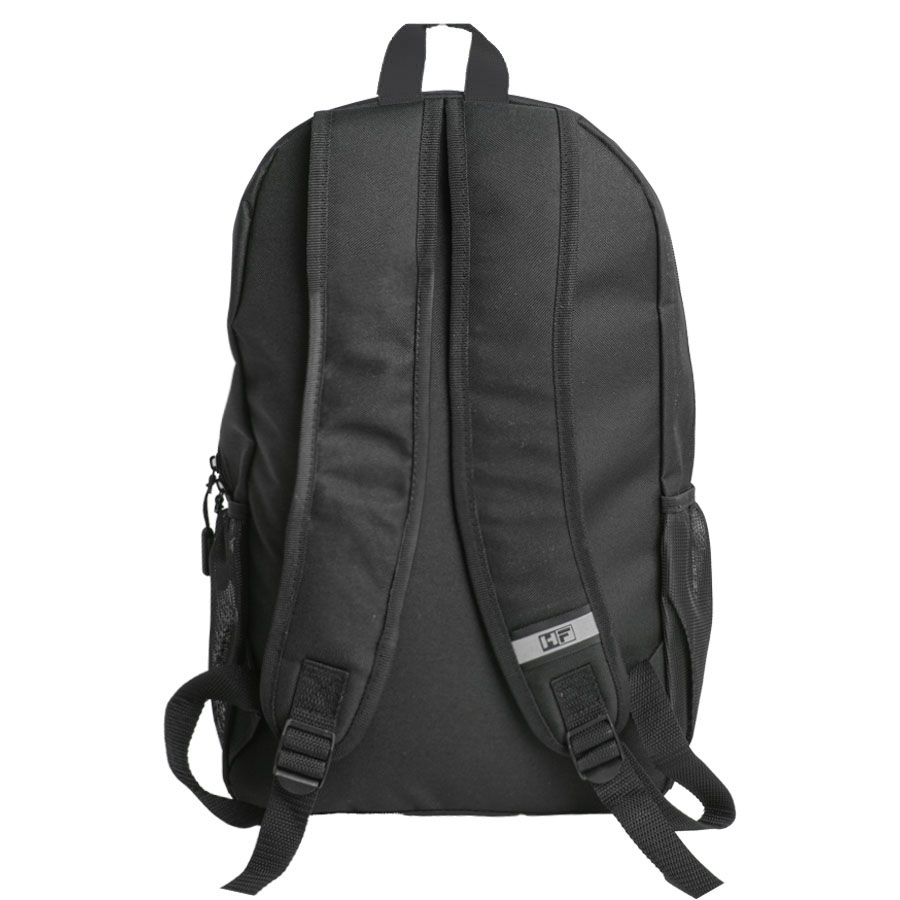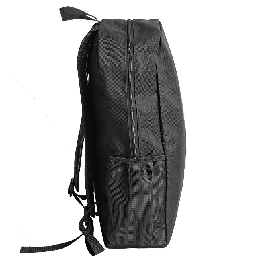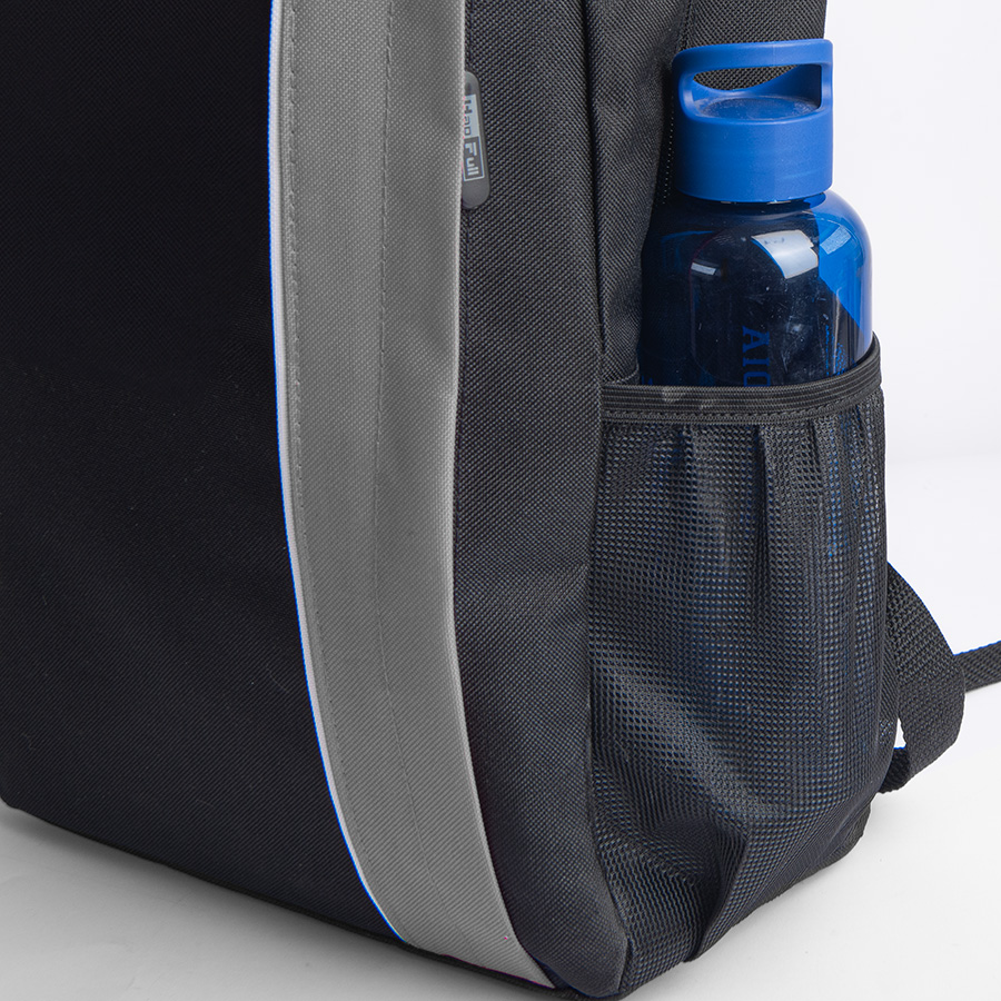 Рюкзак выполнен из 100% полиэстера 600 D. Одно основное отделение, два боковых сетчатых кармана для бутылок. Одно внутреннее отделение для компьютера, один передний карман на молнии, мягкая задняя панель.Объём: 14 литров.