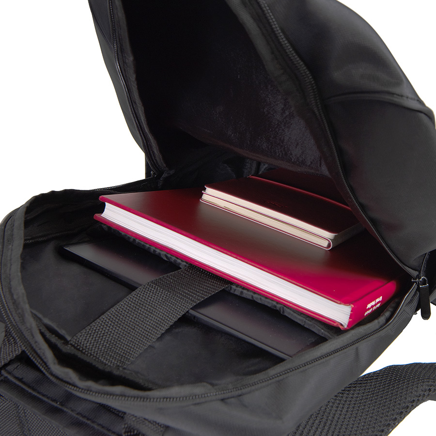 Практичность, функциональность и удобство — вот три основных составляющих рюкзака TRIO. · Основная ткань: 100% полиэстер, подкладка: 100% полиэстер · Объём: 16 литров · Вмещает ноутбук 15,6″ Описание: · Прочный и водоотталкивающий материал · Основной отдел на молнии с двумя металлическими пуллерами · Внутри укрепленный отдел для ноутбука с защитной тесьмой на липучке · 2 внешних кармана на молнии: один удобный карман-органайзер, другой для хранения мелочей, которые должны быть всегда под рукой · 2 боковых кармана · Эргономичные лямки прошиты дополнительными стропами в быстро изнашиваемых местах, которые можно отрегулировать по длине и зафиксировать пластиковыми крепежами · Упаковка: прозрачный пакет