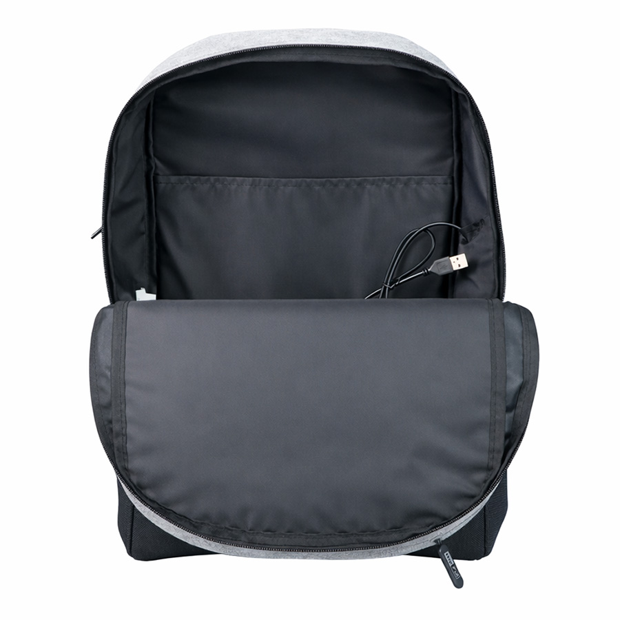 СравнитьРюкзак выполнен из 100% полиэстера верхняя часть 300 D, нижняя часть 600 D. Одно основное отделение на молнии, один внутренний карман с подкладкой для компьютера. Внутренняя подкладка из полиэстера 210D, один карман на молнии с лицевой стороны. Вентилируемые задняя деталь и ремни. Ремень для чемодана. Два сетчатых кармана для бутылок. Один USB-порт для мобильного телефона и кабель. Светоотражающие детали.Объём: 14 литров.