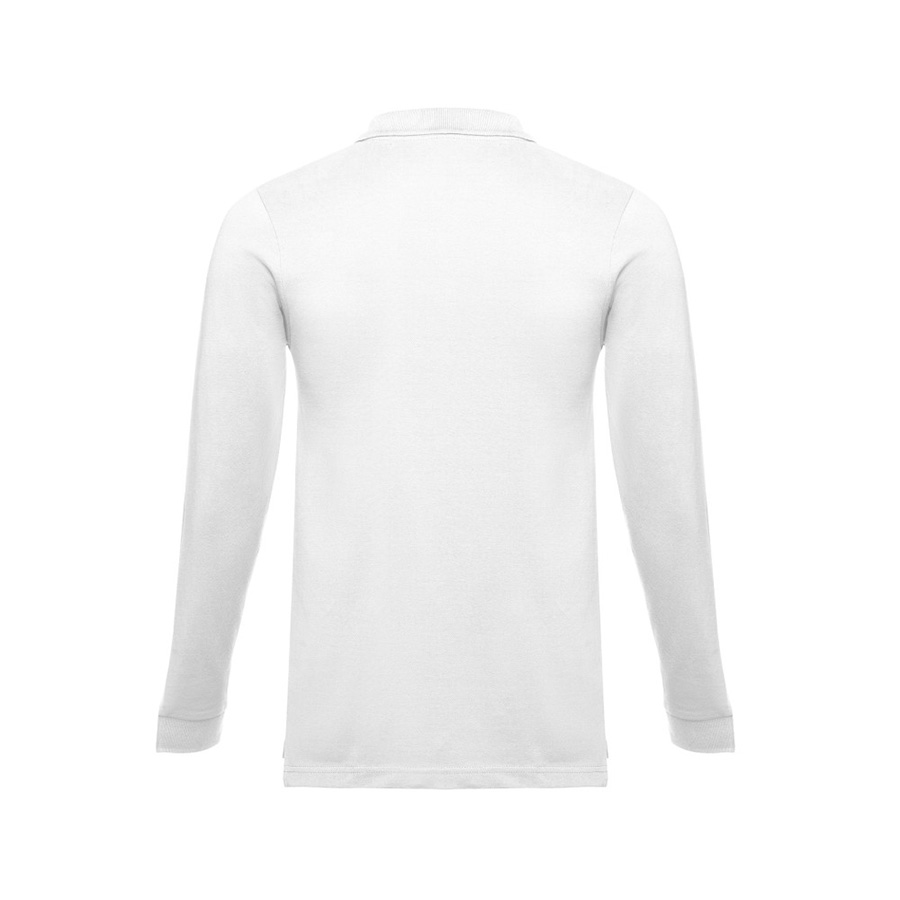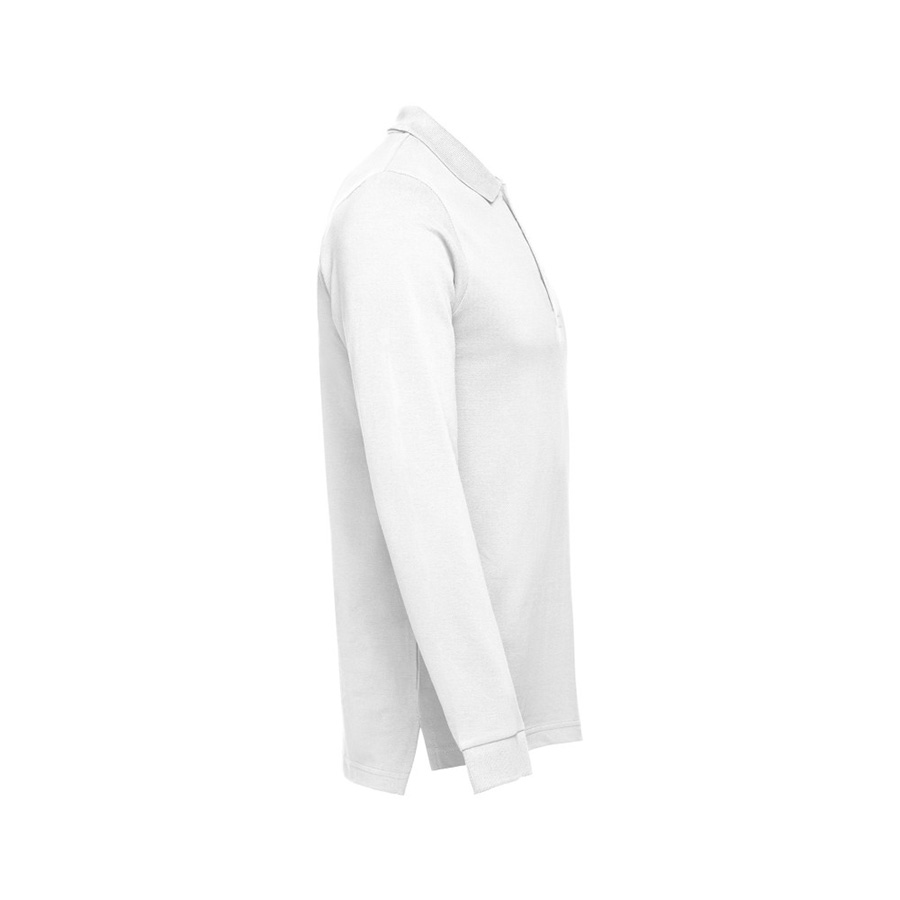 Мужская рубашка-поло с длинным рукавом из хлопковой ткани-пике. Полотно футболки упругое и гладкое благодаря обработке ферментами «enzyme wash» и сохраняет форму при стирке. Модель полуприлегающего силуэта. Благодаря манжете из риба 1х1 рукав смотрится очень аккуратно. Воротник также выполнен из риба 1х1, внутри ворота — укрепляющая тесьма по горловине. Планка с 3 пуговицами в цвет основной ткани изделия. Запасная пуговица на ярлыке во внутреннем боковом шве.