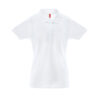Женская рубашка-поло из смесовой ткани-пике. Полотно футболки упругое и гладкое благодаря обработке ферментами «enzyme wash» и сохраняет форму при стирке. Модель полуприлегающего силуэта. Благодаря манжете из риба 1х1 рукав смотрится очень аккуратно. Воротник также выполнен из риба 1х1, внутри ворота — укрепляющая тесьма по горловине. Планка с 3 пуговицами в тон изделия. запасная пуговица на ярлыке во внутреннем боковом шве.