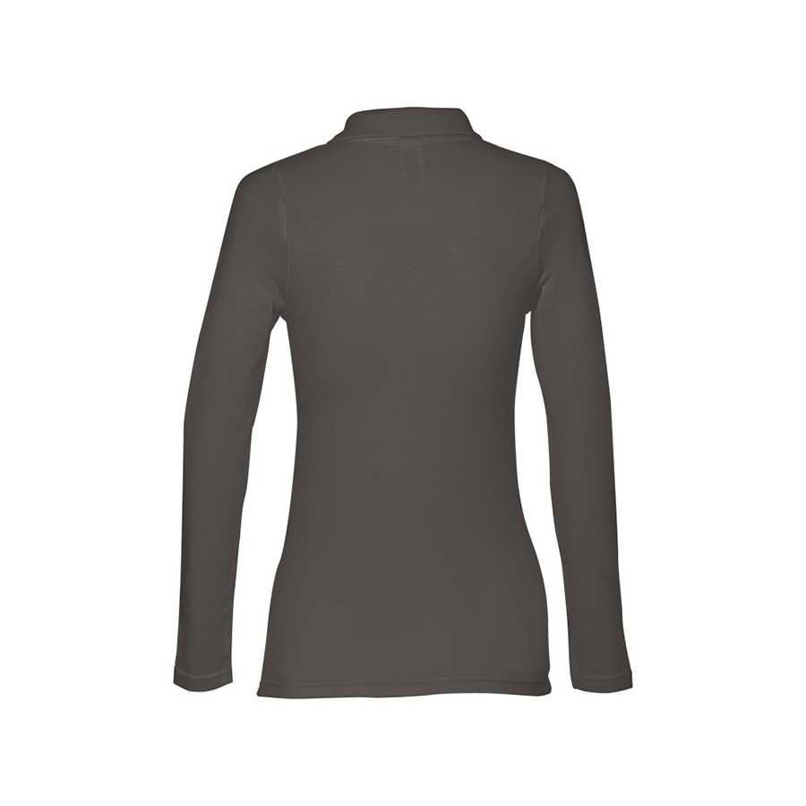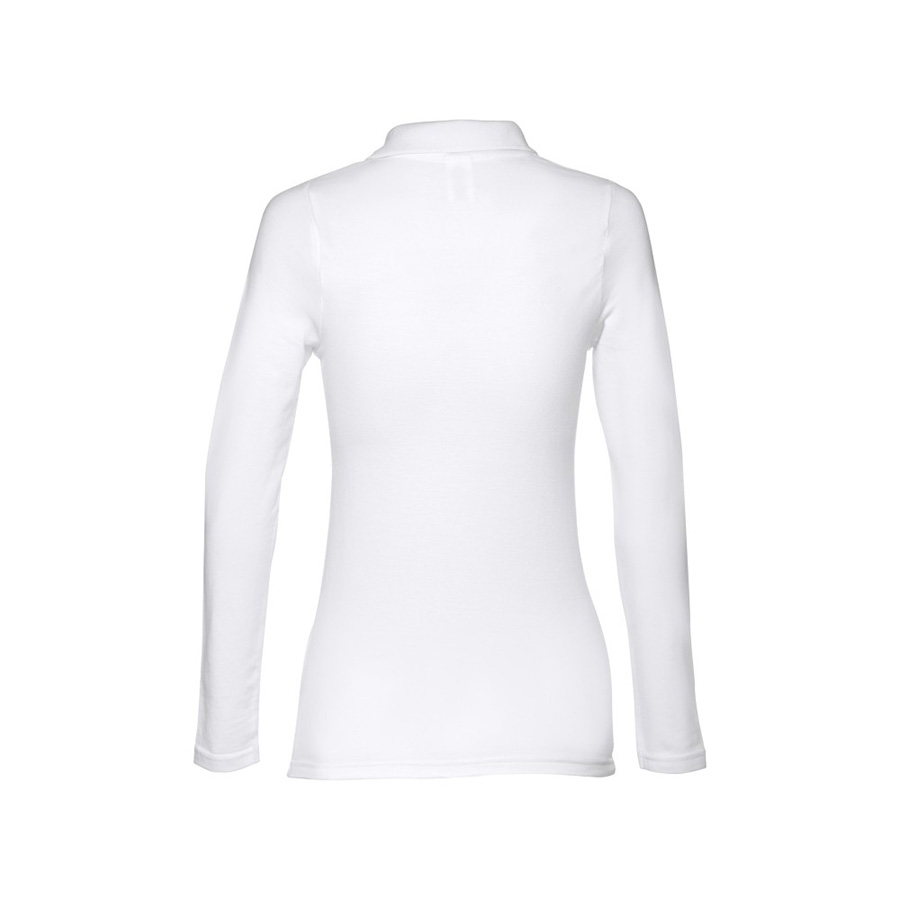 Женская рубашка-поло с длинным рукавом из хлопковой ткани-пике. Полотно футболки упругое и гладкое благодаря обработке ферментами «enzyme wash» и сохраняет форму при стирке. Модель приталенного илуэта. Благодаря манжете из риба 1х1 рукав смотрится очень аккуратно. Воротник также выполнен из риба 1х1, внутри ворота — укрепляющая тесьма по горловине. Планка с 3 пуговицами в цвет основной ткани изделия. Запасная пуговица на ярлыке во внутреннем боковом шве.