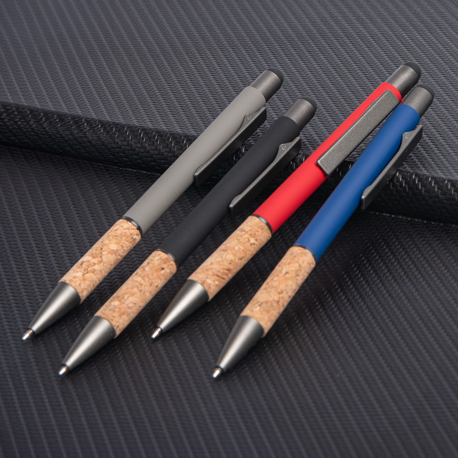 Стиль, изящность линий и качество – 3 основных компонента, на которые была сделана ставка при разработке данной модели ручки. Благодаря специальной грип зоне из натуральной пробки ручку приятно и удобно держать в руке. Чернила легко ложатся на бумагу и быстро высыхают. Надежный стальной пищущий узел с шариком из карбида вольфрама – гарантия долгой службы. Дизайн ручки сочетает в себе сдержанность со скрытой внутренней энергией. А корпус и эксклюзивный клип идеально подходят под персонализацию. • Pantone, близкий к 200 С• Размер 140*10 мм• Корпус из алюминия с покрытием soft touch• Стилус черного цвета• Металлический клип-прищепка серого цвета • Пластиковые носик и кнопка в цвет клипа• Грип из натуральной пробки• Нажимной механизм подачи стержня• Пулевидный пишущий узел 1.0 мм• Длина линии письма 1000 м • Чернила Dokumental. Цвет чернил синий • Сменный стержень X-20• При гравировке вскрывается натуральный цвет алюминия, который может быть либо более белый, либо более серого оттенка
