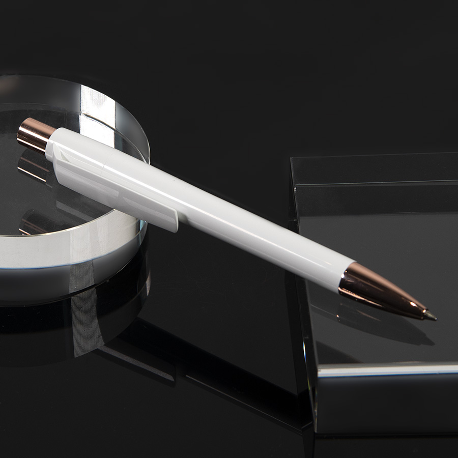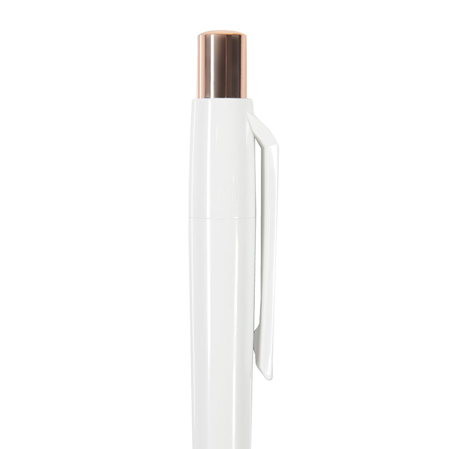 Элегантная ручка Mood — символ благородной роскоши и отражение актуальных тенденций мира дизайна. Ручка обладает приятной тяжестью, свойственной металлическим ручкам, и комфортно лежит в руке благодаря плавной обтекаемой форме корпуса. Широкий клип и корпус обеспечивают большое поле для нанесения логотипа, а высококачественный ABS-пластик гарантирует его стойкость и великолепный внешний вид ручки. Металлические носик и кнопка с зеркальным покрытием «под розовое золото». Процесс обработки металлических деталей проходит под тщательным индивидуальным котролем, что гарантирует гладкость и безупречный блеск покрытия. Цвет корпуса, близкий к Pantone White C. Стержень Plastic Parker type, пишущий узел 1.0 мм, синие чернила Dokumental, до 4000 м письма. Производство : Италия