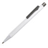 • Pantone, близкий к White• Размер 11.5 х 138 мм• Шестигранный корпус из алюминия• Металлический клип-прищепка (наш фирменный)• Носик и кнопка из пластика• Нажимной механизм подачи стержня• Пулевидный пишущий узел 1.0 мм• Длина линии письма 1000 — 1200 м • Чернила Dokumental. Цвет чернил синий• Сменный стержень Parker type