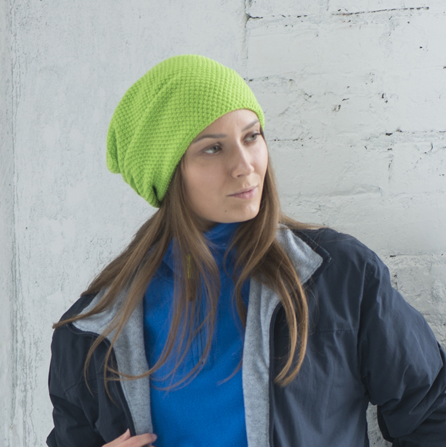 Цвет, близкий к Pantone 368 C Удлиненная легкая двухслойная шапка из мягкой пряжи средней вязки с рельефным рисунком, напоминающим медовые соты. Snobby идеально впишется в ваш повседневный гардероб, а наличие ярких неоновых цветов поможет поднять настроение и выделиться из толпы.