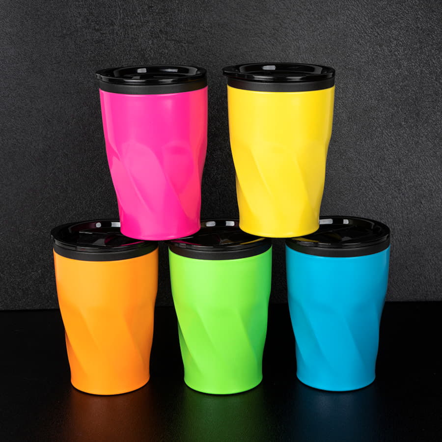 Коллекция термокружек NEON, отличается яркими матовыми цветами и оригинальной формой. Внимание: в этой модели колба выполнена из пищевого термоустойчивого пластика (PP). Внешние стенки стальные. Кружка не является вакуумной. Сохранит температуру горячих напитков — 1,5 часа, холодных 3 часа. Внимание! Конструкция клапана на крышке не предусматривает 100% защиту от протекания. При переворачивании жидкость может вытекать из-под клапана для питья.