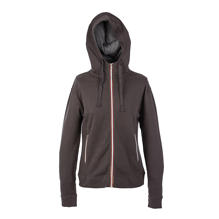 Комфортная женская толстовка худи на молнии LAS VEGAS LADY Худи с приталенным силуэтом из футера с начёсом, плотностью 280 г м² и смесовым составом: 80% хлопка и 20% полиэстера. С таким составом изделия не деформируются и служат долго. Капюшон с подкладом и удобным высоким воротником-стойкой. Шов горловины усилен мягкой лентой Низ толстовки и рукава из эластичной рибаны. Основная молния и молнии в боковых карманах — контрастные. Материал: футер с начёсом, 80% хлопка и 20% полиэстера, 280 г м².