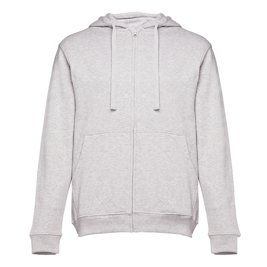 Толстовка с капюшоном на молнии. Внутренняя сторона с начёсом. Подкладка в капюшоне из тонкого трикотажа в тон основного полотна. Потайная центральная молния. Манжеты и низ изделия обработаны рибом 1х1.
