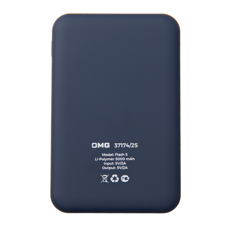 Универсальный аккумулятор Flash 5 (5000 мАч) с подсветкой и soft touch, синий, 9,8х6.3х1,3 см