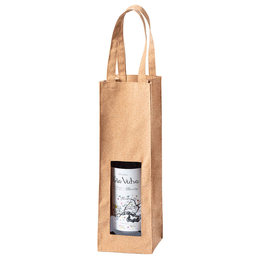 Упаковка для одной бутылки с окном и ручками, изготовлена из пробкового дерева Индивидуальная упаковка — ПЭ пакет
