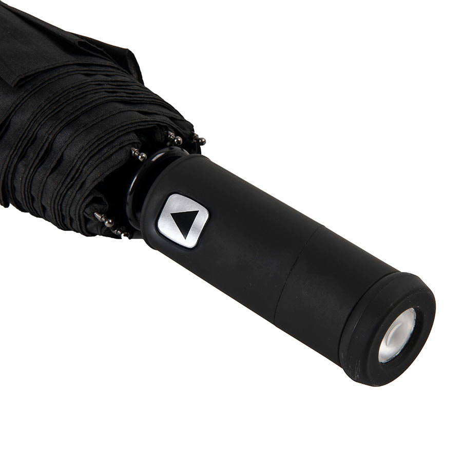 Зонт PRESTON складной с ручкой-фонариком, полуавтомат; черный; D=100 см; 100% полиэстер