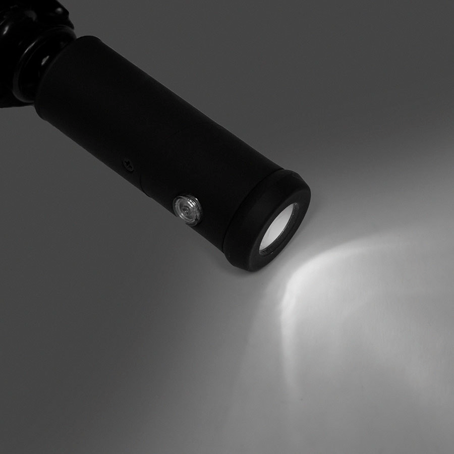 Ручка с покрытием soft-touch, в нее встроен фонарик с возможностью регулировки направления света. Батарейки в комплекте: 3шт, тип AG13 (таблетка) плотность нейлона 190Т
