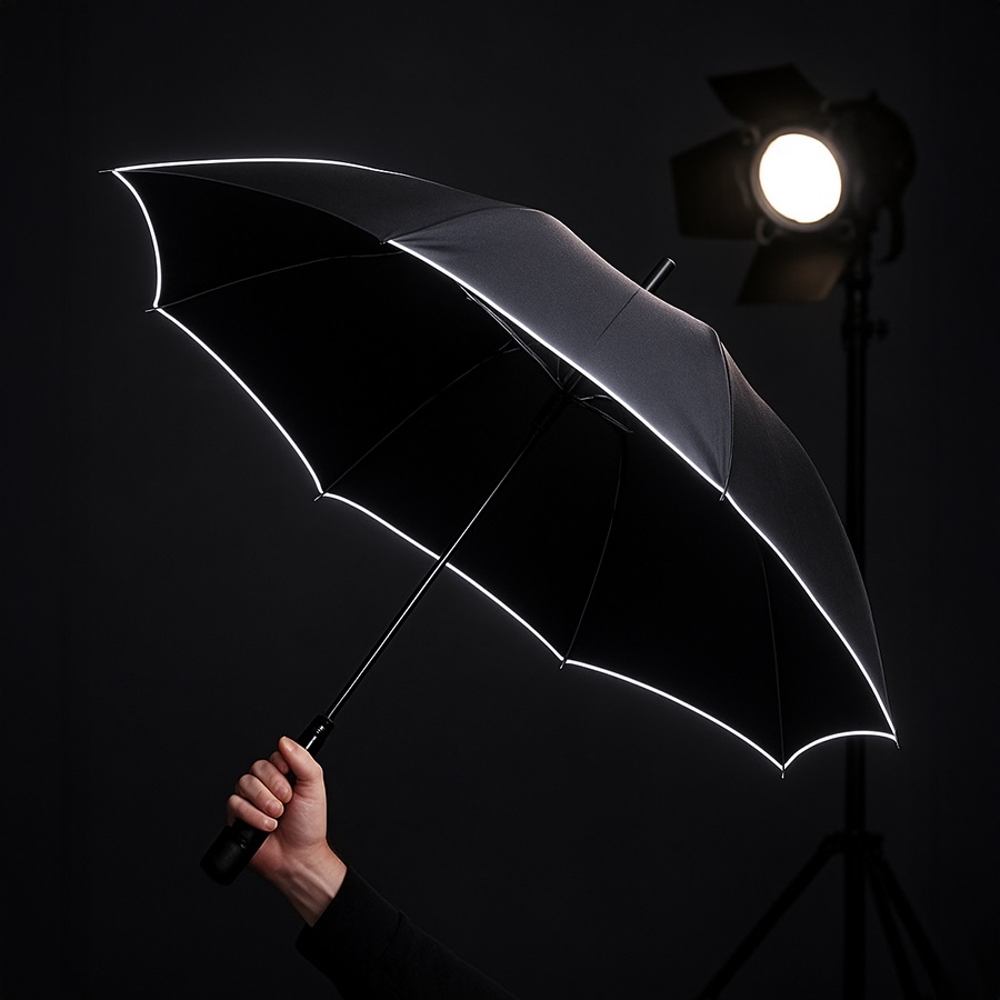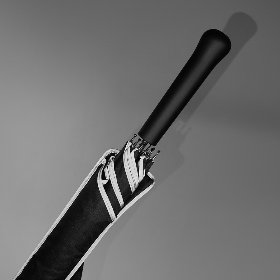 Зонт-трость «Reflect», полуавтомат, эпонж, чёрный со светоотражающей окантовкой в чехле с ручкой