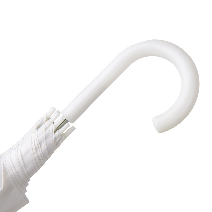 Зонт-трость, полуавтомат. Состав купола: 100% нейлон 190T. Диаметр купола: 103 см. Состав стержня: металл. Состав спиц: металл. Ручка: пластик. Цвет купола: белый.